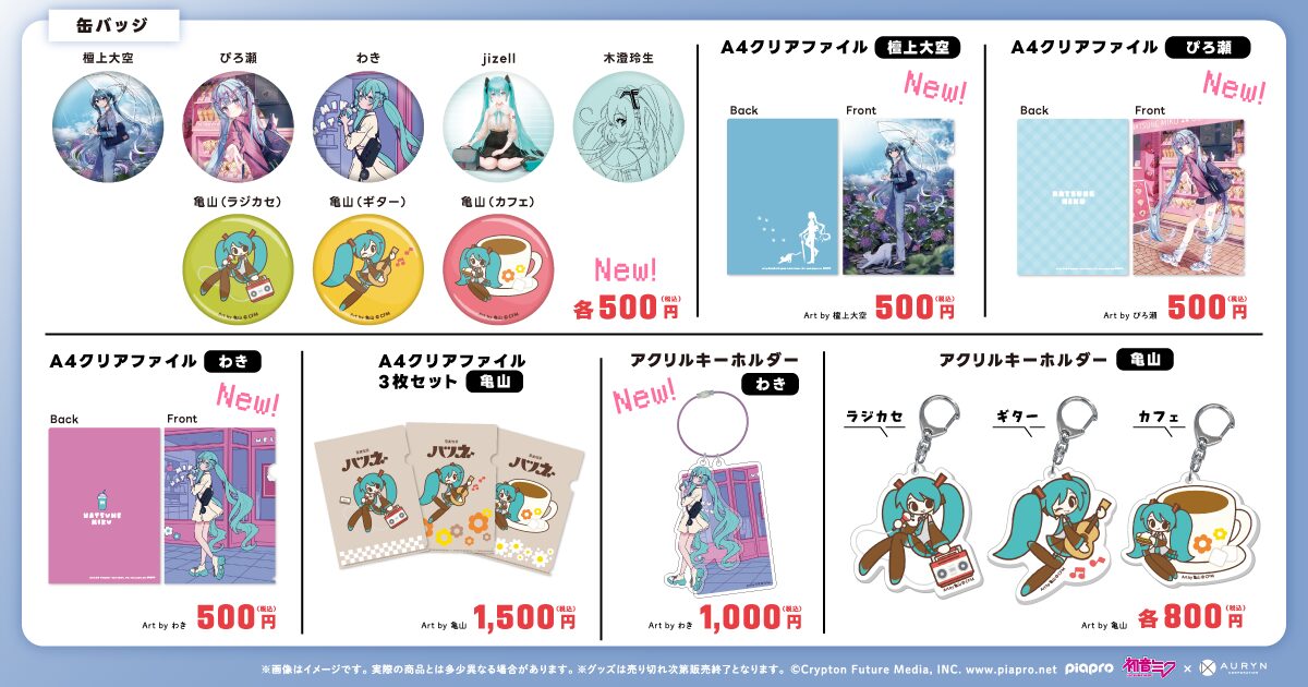 『SNOW MIKU 2023』で発売し、ご好評をいただいた「ビッグトートバッグ」の改良版「ビッグトートバッグ V2」をはじめ、缶バッジ、クリアファイル、アクリルキーホルダー、アクリルスタンド、タペストリーなど、会場初お披露目となる新商品を多数ご用意しております。